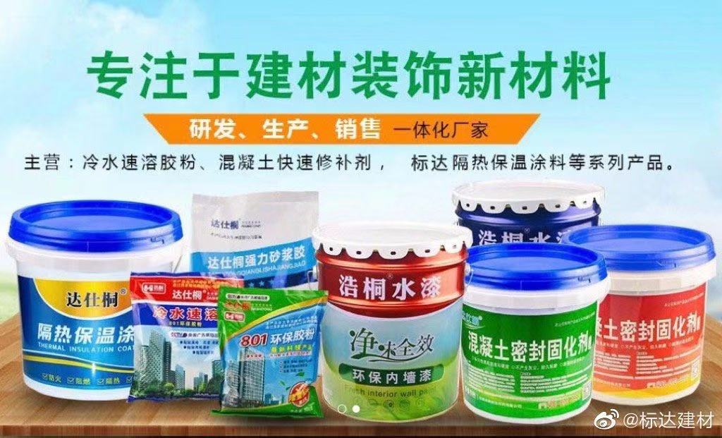 標(biāo)達(dá)裝飾主要三大系列產(chǎn)品:一是納米生態(tài)墻面漆(干粉型),二是瓷磚、玻化磚和大理石的粘帖膠;三是建筑用各類膠粉。