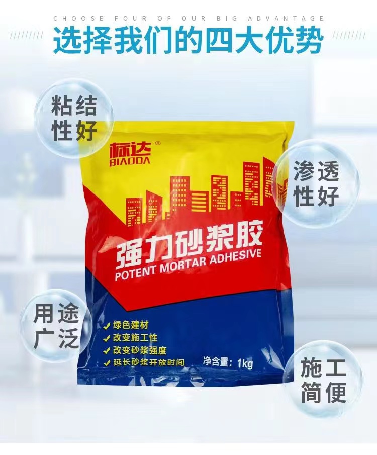 強力砂漿膠是生產(chǎn)瓷磚膠的主要原料,主要的應用范圍是建筑砌磚、粘結(jié)瓷磚等,把強力砂漿膠放入到水泥漿中,能有限增強水泥漿的抗裂能力,能有限防止建筑物脫落,能延長水泥漿的開放時間。